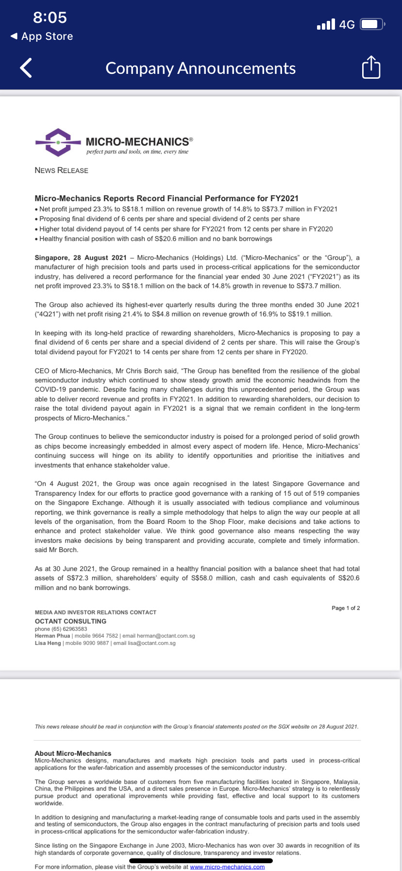 $MICRO-MECHANICS (HOLDINGS) LTD(5DD.SI)$From Sgx. Dividends