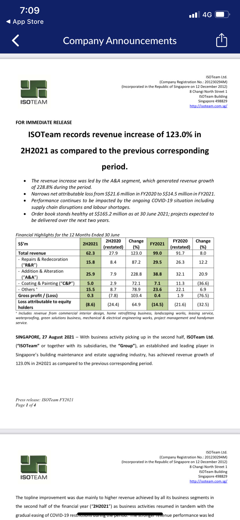 $ISOTEAM LTD.(5WF.SI)$result from Sgx