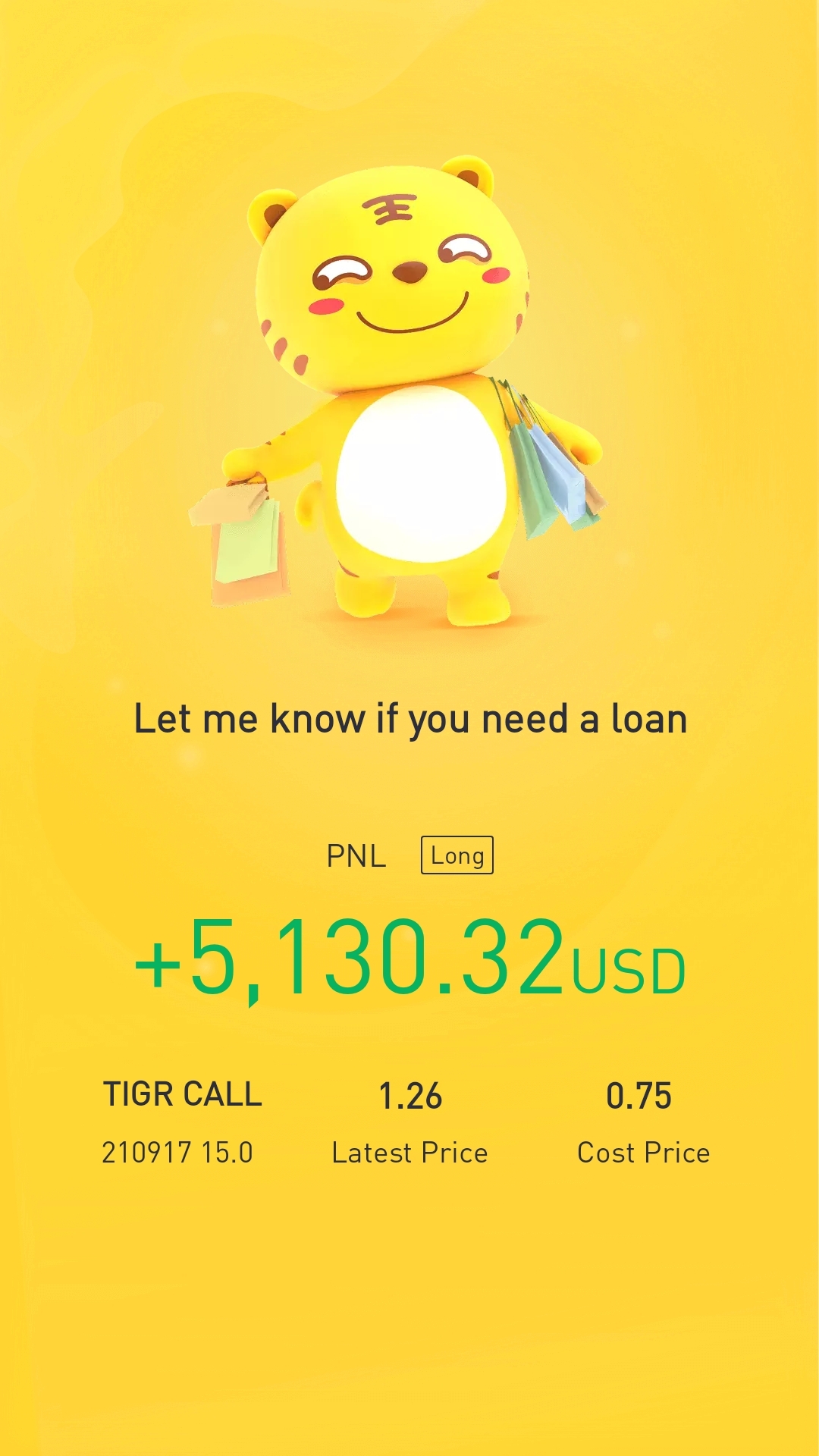 $TIGR 20210917 15.0 CALL(TIGR)$Buybuybuy, see Im not selling since just now, my cost is only 7k, And I earn above 50% alrdy. To the moon