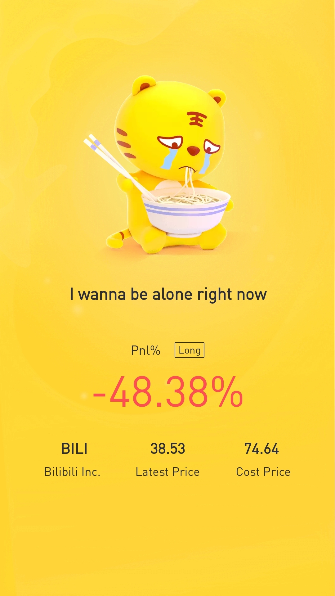 $Bilibili Inc.(BILI)$Sigh, get chopped in half. Big lesson learnt. When sentiments are bad, it does not matter even if earnings report are within consensus. Any little pebble can rock the boat and flip it.