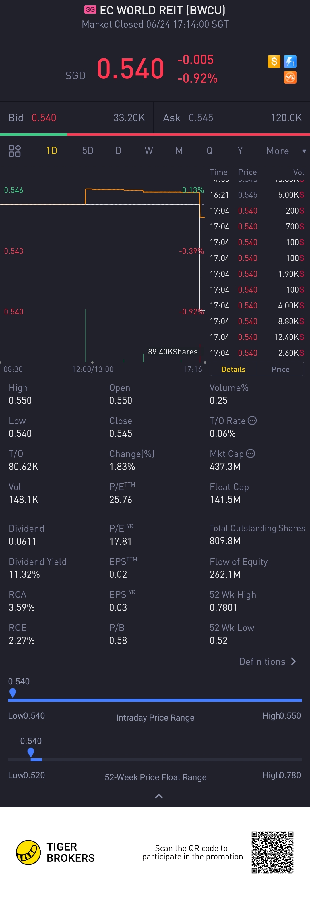 $EC WORLD REIT(BWCU.SI)$a very good yield hope the price recovers soon
