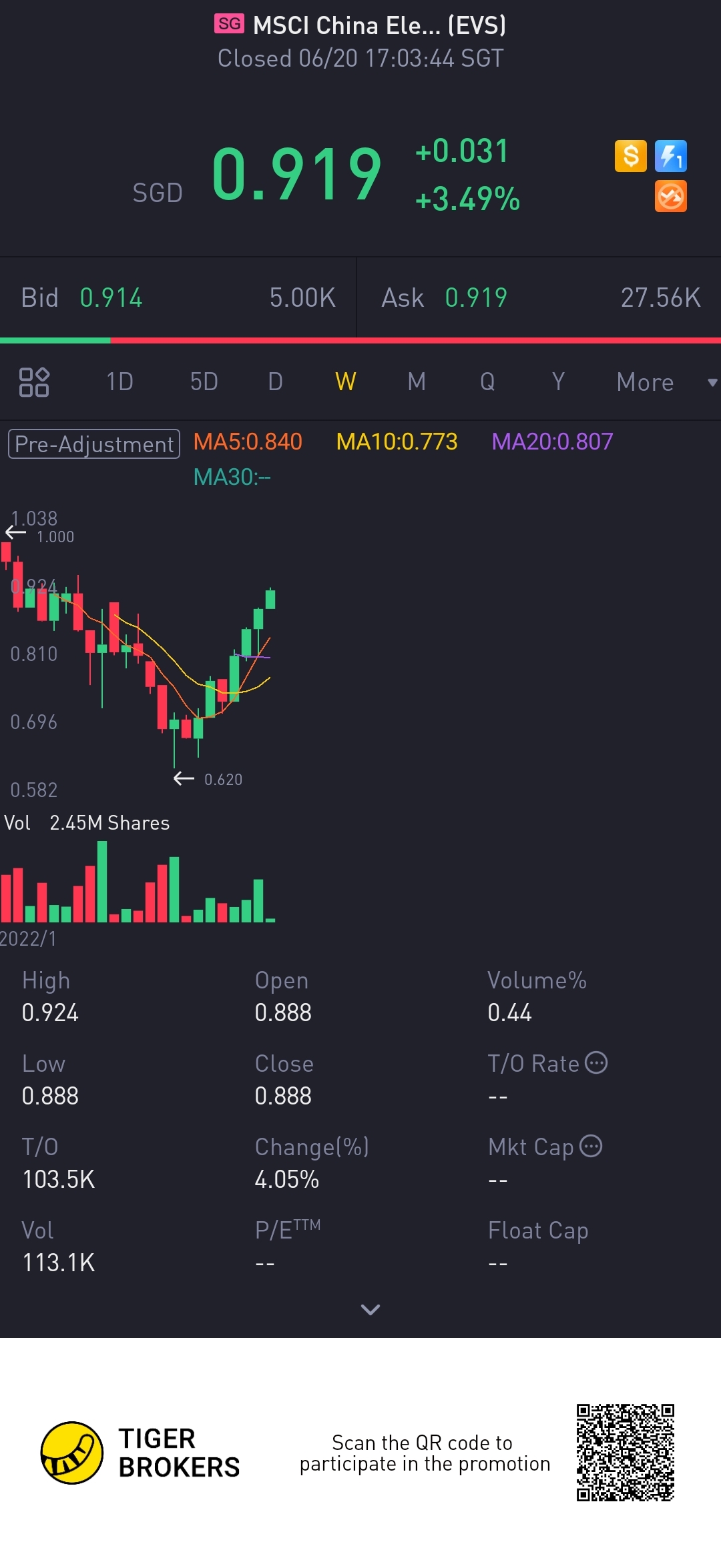$MSCI China Electric Vehicles and Future Mobility ETF-NikkoAM(EVS.SI)$ up, up and away. China is looking especially appealing as things eases
