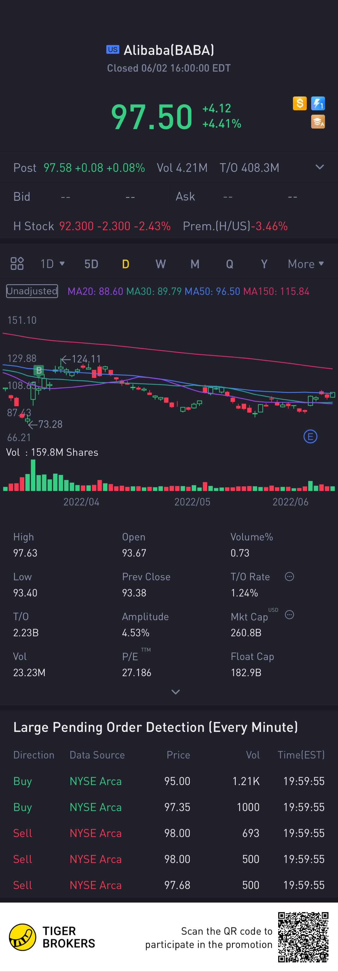 $Alibaba(BABA)$Will buy more if it goes above $105