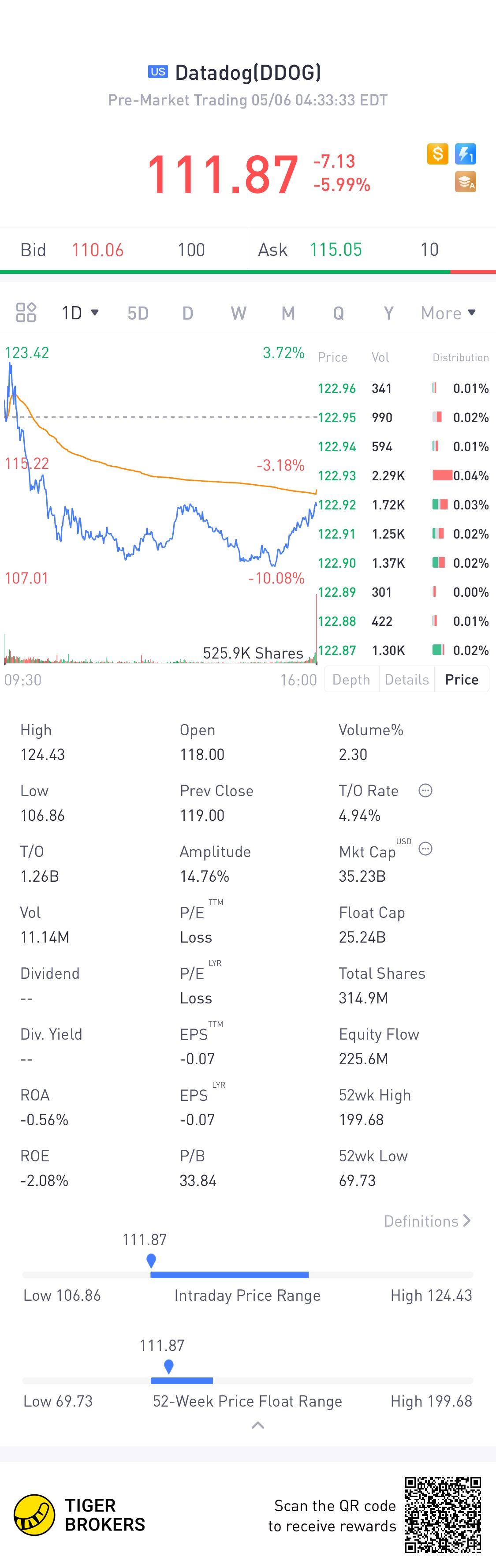 $Datadog(DDOG)$It's testing patience. But hold on To your dog. Remember the SL 110$