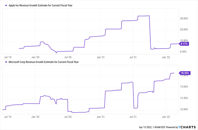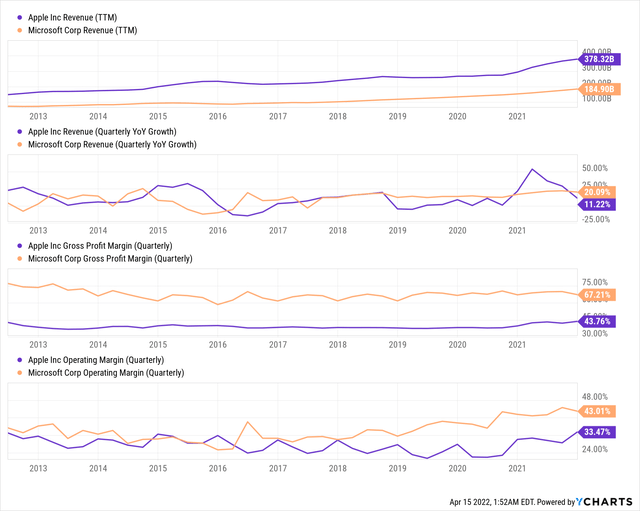 - Considering business fundamentals, I think these premium trading multiples are probably deserved. After all, both Apple and Microsoft are highly-profitable businesses with a solid track record of delivering revenue and earnings growth.