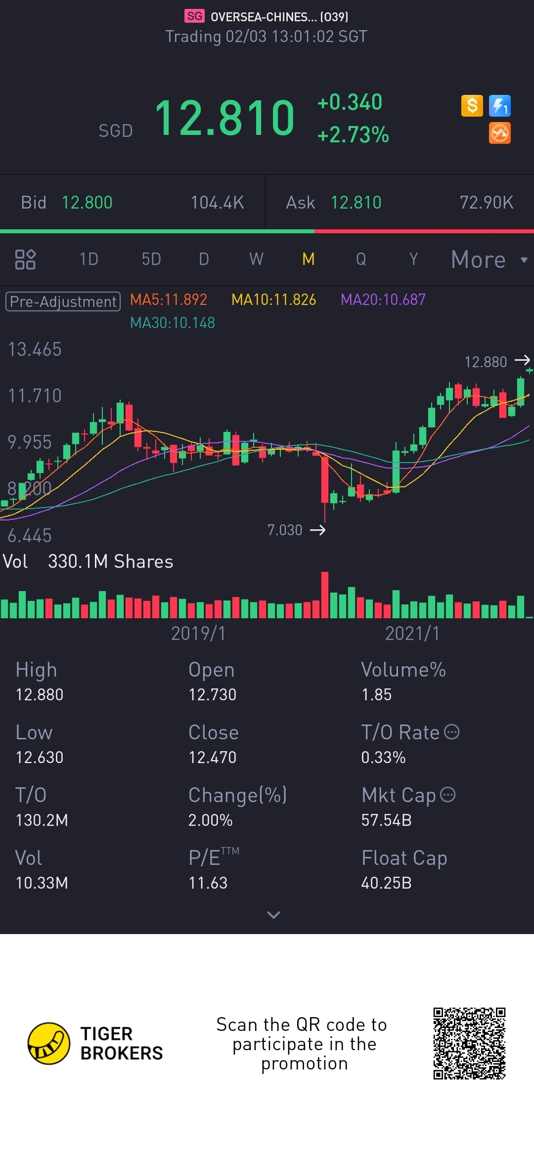$OVERSEA-CHINESE BANKING CORP(O39.SI)$OCBC starting to move! It is trading between