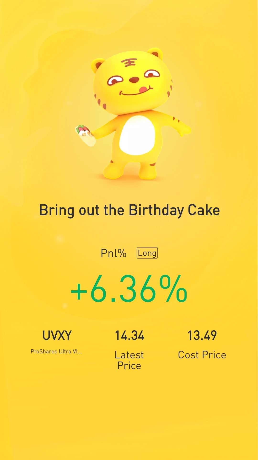 $ProShares Ultra VIX Short Term Futures(UVXY)$patience pays off ! 5% x twice in a week ! No fear