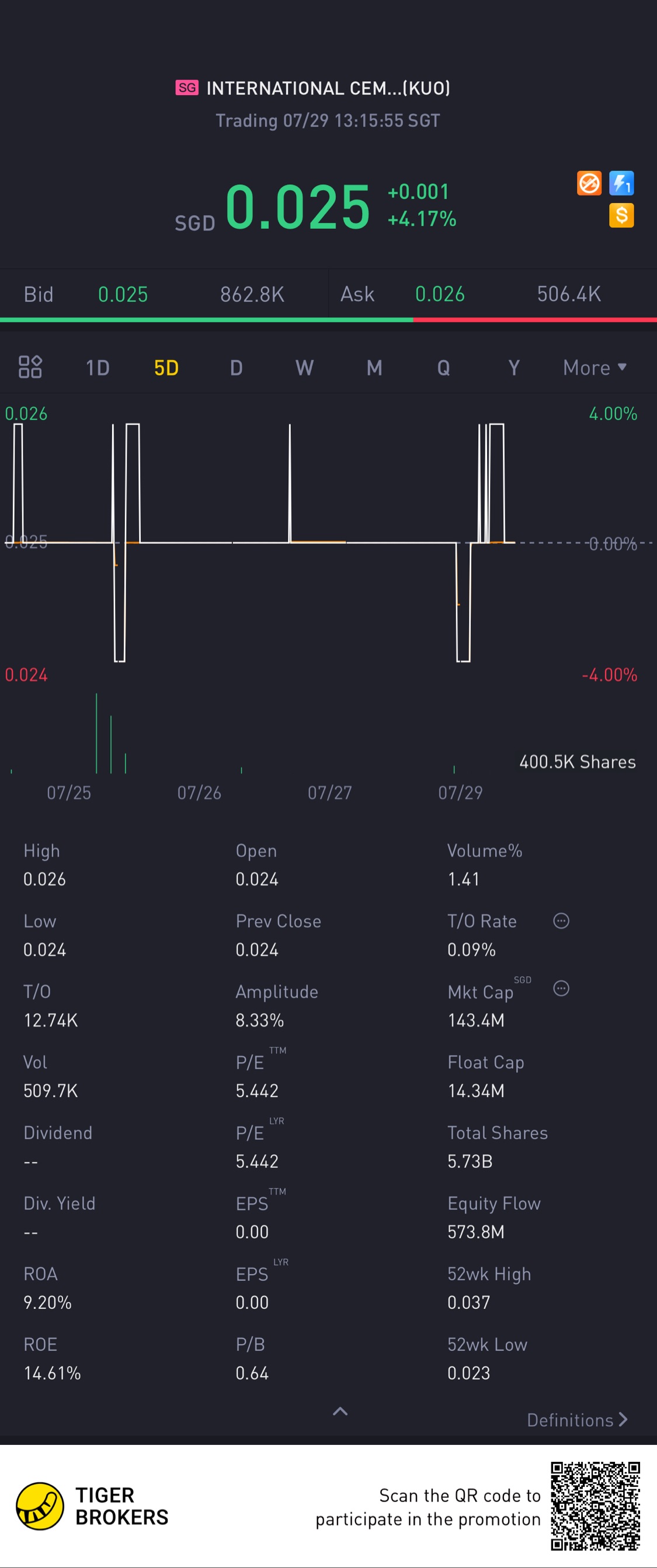 $INTERNATIONAL CEMENT GROUPLTD.(KUO.SI)$Suppose to be a strong cash flow company...... Up Down Up Down.....sian.....