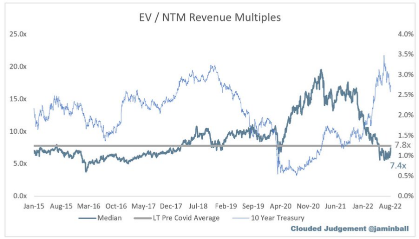 Software multiples are almost back to their pre-covid average (7.4x vs 7.8x).