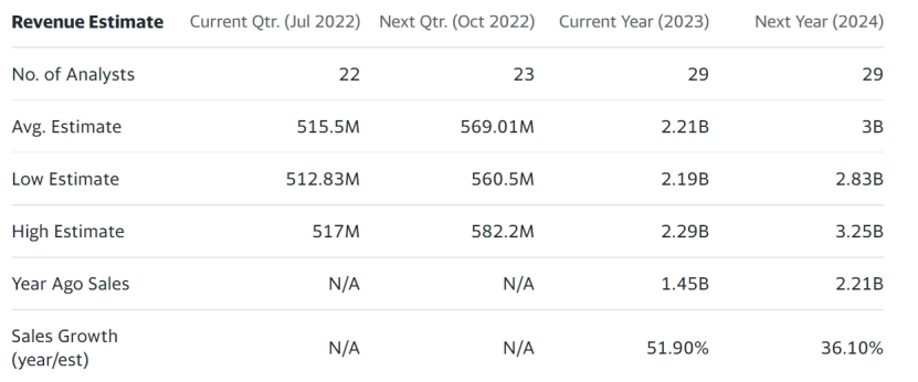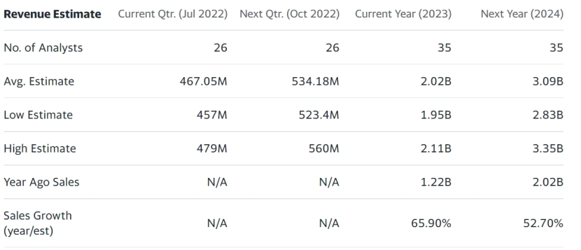 The recent consensus estimate is $515.5 million, up around 50% yoy.