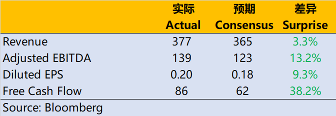 At the same time, Q3's revenue is expected to be US $385 million, which is higher than the market expectation of US $382 million, and EBITDA is expected to be US $140 million, which is higher than the market expectation of US $90 million.