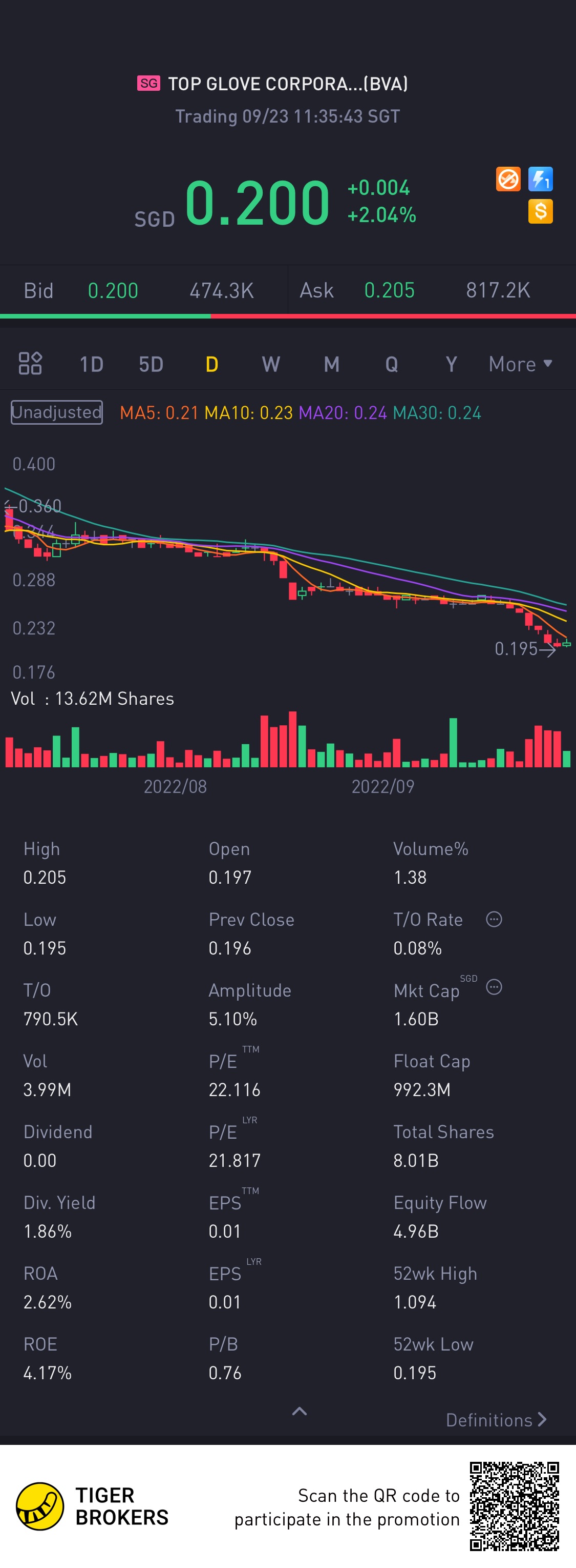 $TOP GLOVE CORPORATION BHD(BVA.SI)$More down please .. then can easy to average down .. 🤣