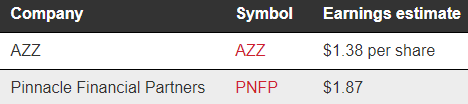 Noteworthy earnings reports for today: $AZZ Inc(AZZ)$ $Pinnacle Financial Partners(PNFP)$