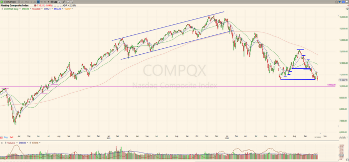 Nasdaq (-1.04%) continued its downtrend and close under the June support with under-average volumes. The price tried to go even lower during the day, but the buyers were stronger and pushed back the price (see yesterday’s bottoming tail). Next targets? Probably the psychological number 10.000. This area has some history marks: minor support from the pre-COVID highs or pivots after the V-shape reversal. $NASDAQ(.IXIC)$