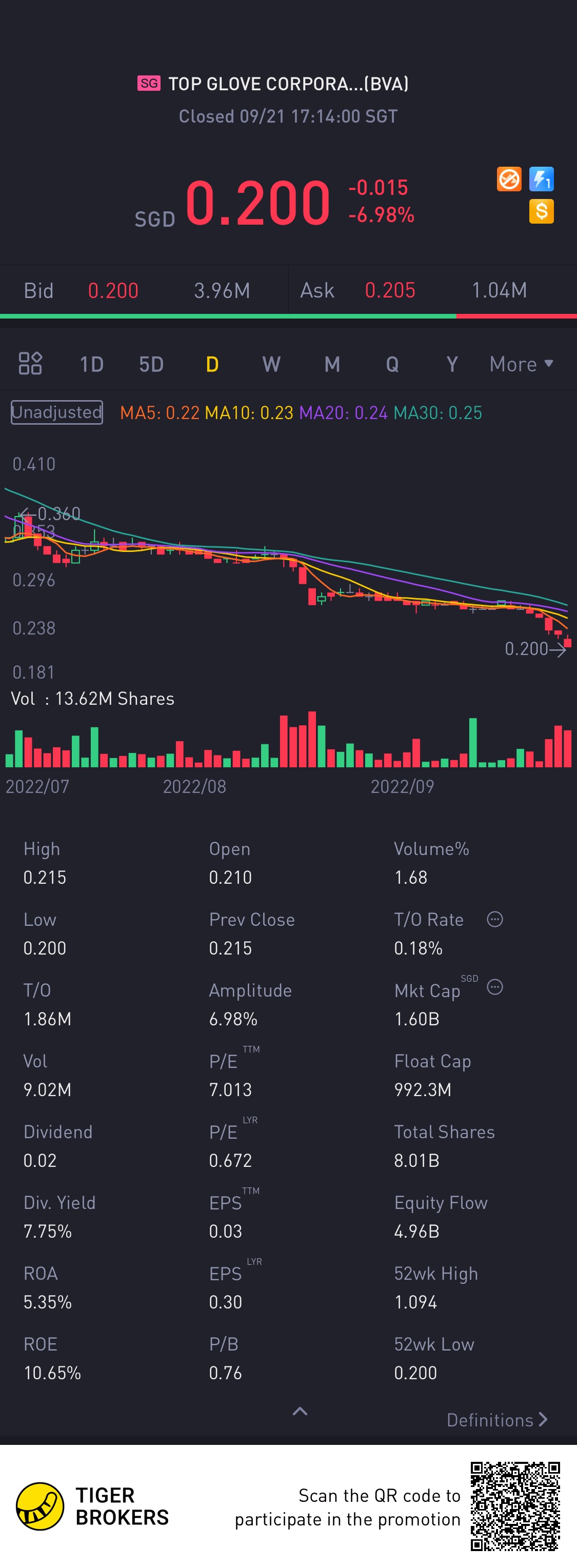 $TOP GLOVE CORPORATION BHD(BVA.SI)$Again... down somemore, can buy it ? đ