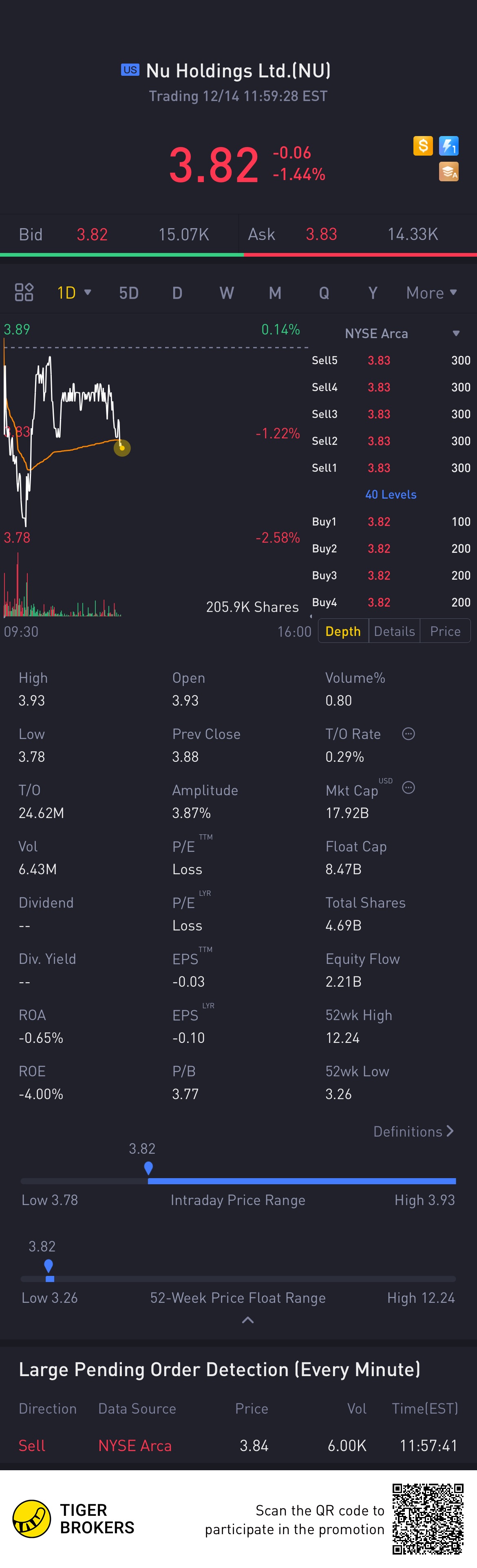$Nu Holdings Ltd.(NU)$ Retail traders often overlook the fact that stocks movement are not just about revenue and earnings of the company. During times like now, there are a lot of speculative trades, Fed & market sentiments, institutional trade influences, and relative fundamental triggered movement in tandem with key indices such as S&P, Dow and Nasdaq. Time frame of trade positions setup ultimately determine each trade profit or loss, regardless the different style of trading. Thoughts?