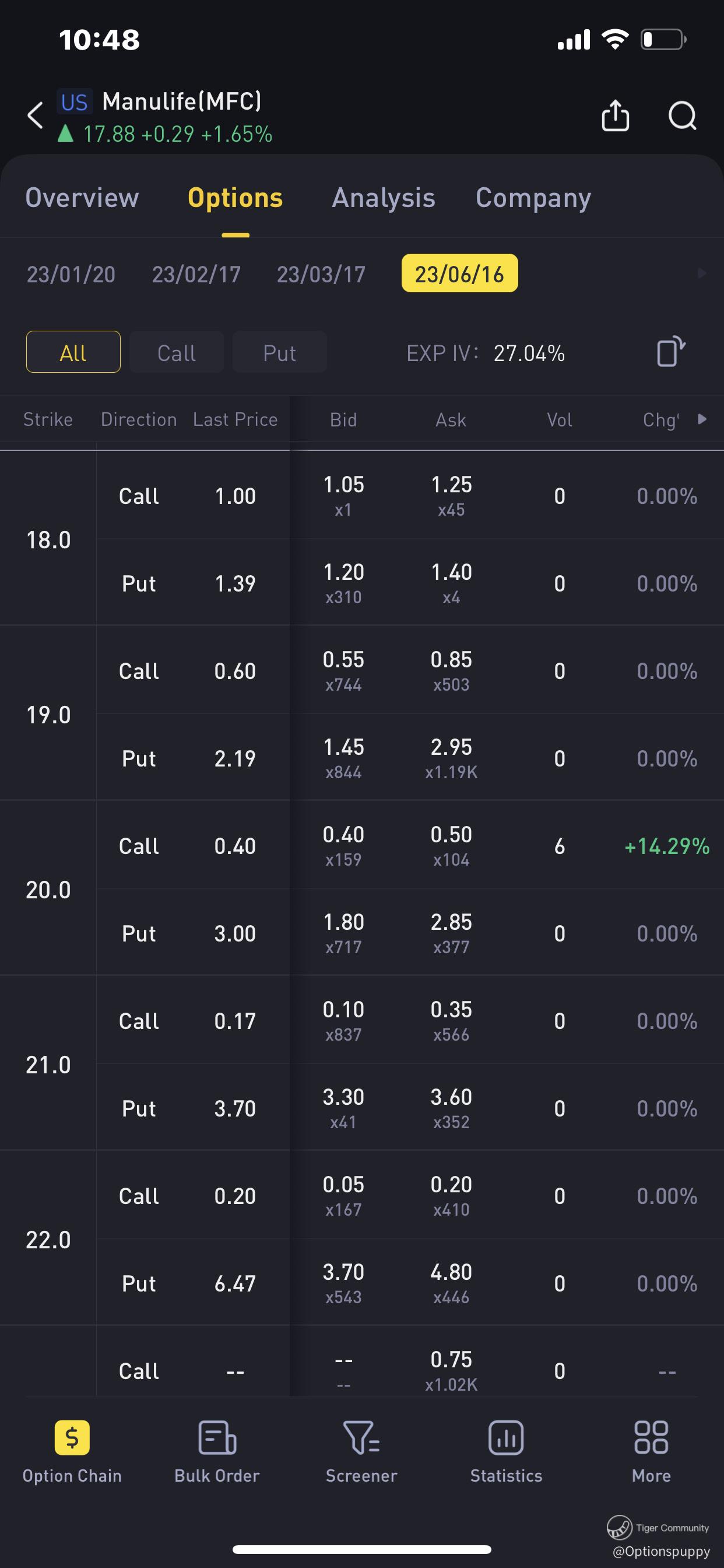 U sell a put on Manulife $18 strike price get premium Of $1