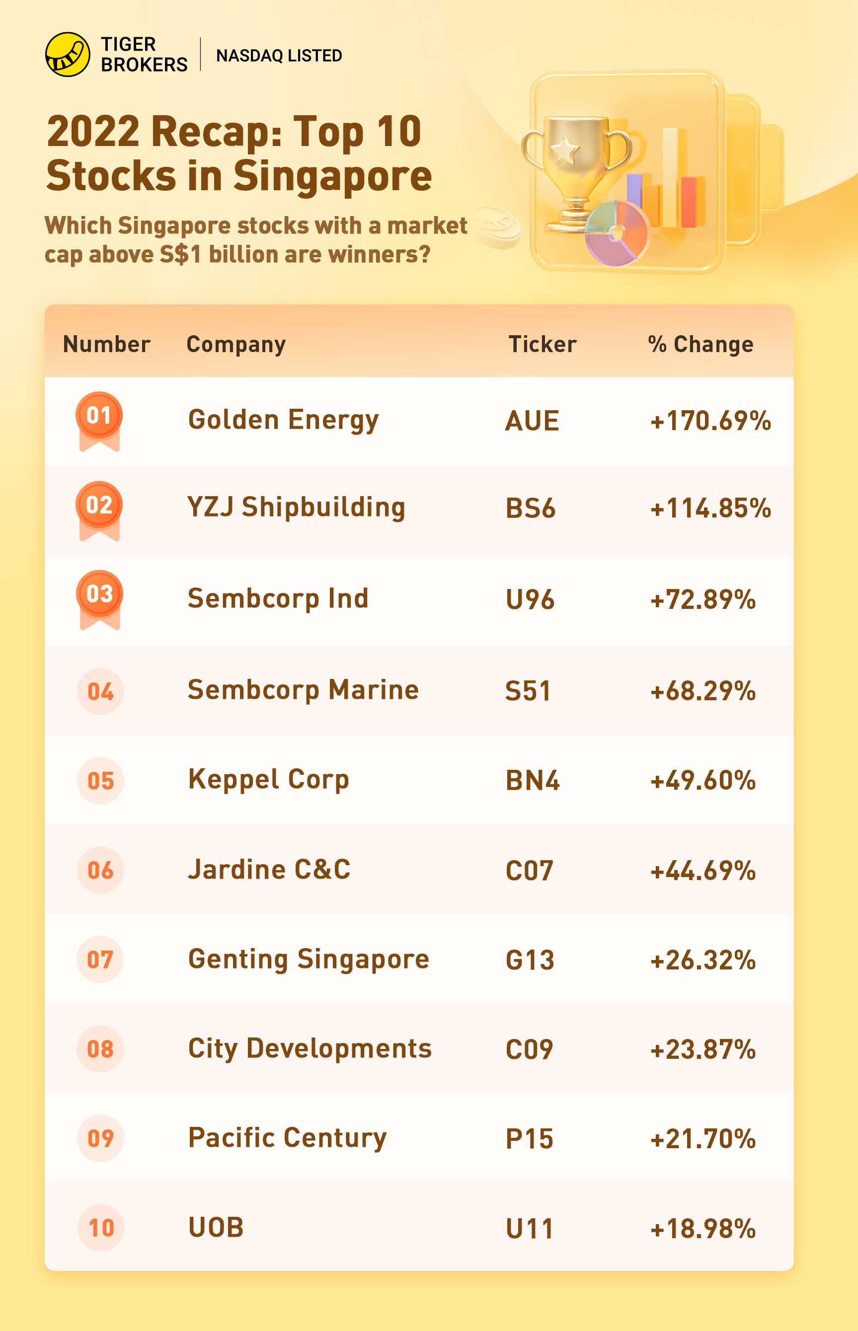 Investors may be pleased to know that the $Straits Times Index(STI.SI)$ has held up well this year, chalking up a small gain of 4.1%. As the curtains come down for 2022, it’s time to reflect on the stock market for the year.