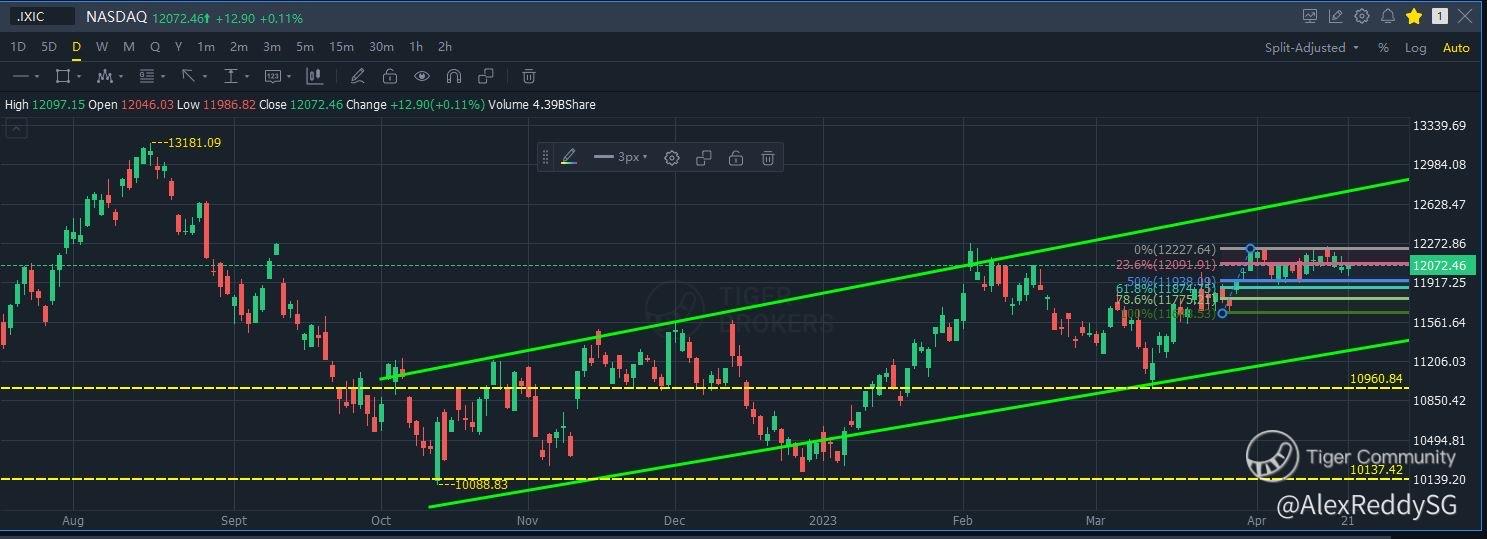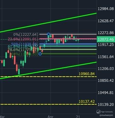 $SPDR S&P 500 ETF Trust(SPY)$ $Invesco QQQ Trust(QQQ)$ i hopethis week it would be BULL BULL bull BEAR BEAR. 12000 would key support level and once it beats 12225, we can expect a breakaway run which may not be possible till FOMC. For this week there would be a 200 point upish in first 2-3 days and then receede to 11950 to end the week. Lets see how it goes.
