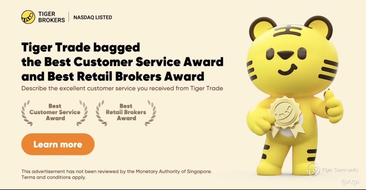 💐💐💐👏🏻👏🏻CONGRATULATIONS👍🏻 to Tiger brokers for winning two top service awards: 🏆Best Retail Broker Award and 🏆Best Customer Service Award‼️These two awards signify 🇸🇬Singapore's retail investors recognition of 🐯Tiger Brokers' technological innovation, development potential and excellent customer service.❤️