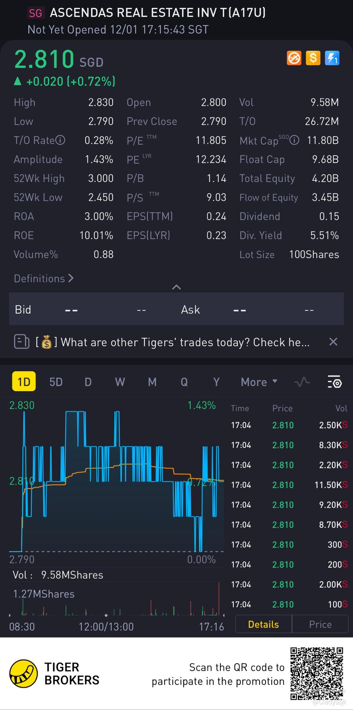 $ASCENDAS REAL ESTATE INV TRUST(A17U.SI)$
