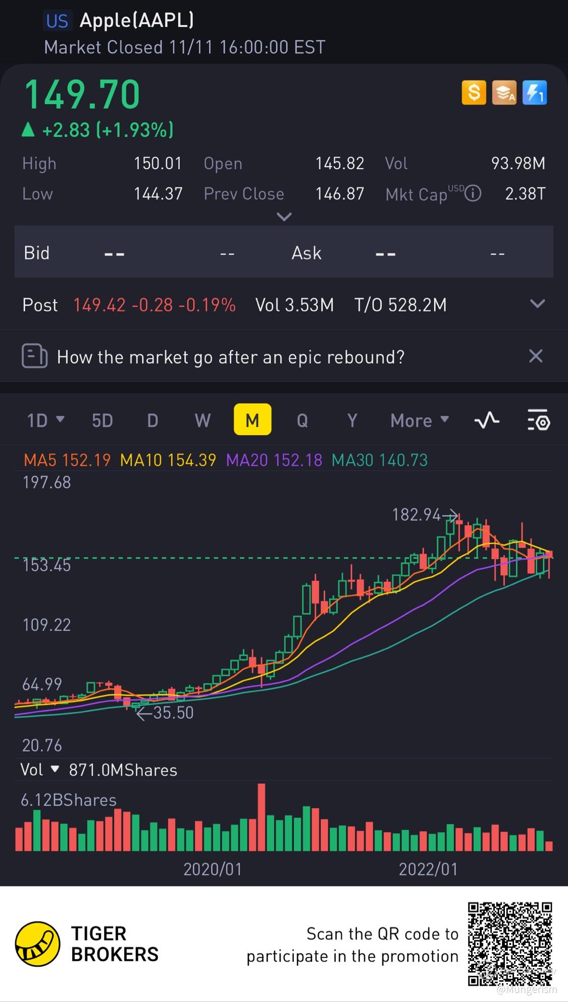 $Apple(AAPL)$ Apple had a good rebound last week and for a stock with such a huge market cap, not sure what driver can drive it a lot higher in the short term. Thinking of selling into further upside this week. Do you agreeor too soon?