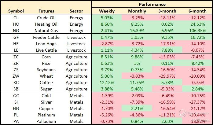 A snapshot of the commodity prices as of the end of last week. Where commodity prices move gives clues about inflation and the strength of demand in the global economy. Energy and agricultural futures of late are showing an uptrend while metals have been quite consistently down. It's a mixed bag of sentiments complicated by the Russia-Ukraine conflicts that can hinder global efforts to curb inflation. While increasing the rates can slow demand down, it can't resolve political issues. And climate change that results in "unprecedented" weather being something we see every year now is not helping either.