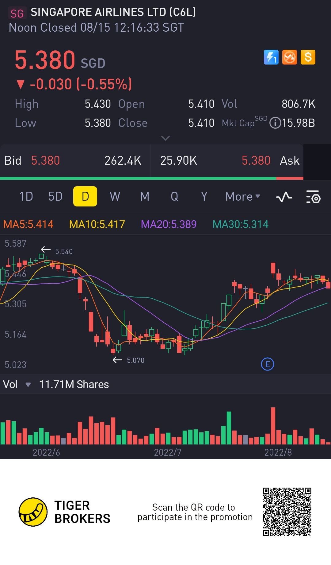 $SINGAPORE AIRLINES LTD(C6L.SI)$waiting for the battle