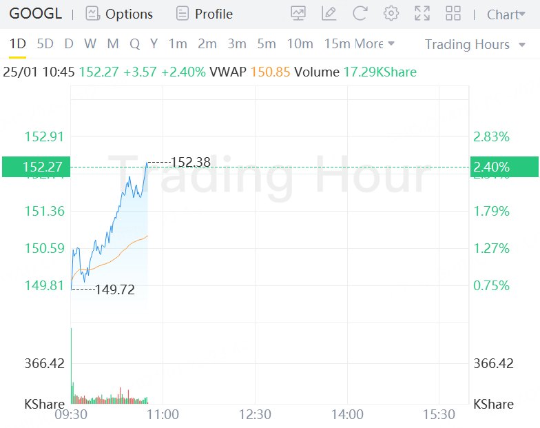 Shares of the Mountain View, California-based firm were traded at $152.27 per share in intraday trading, on the way to surpass the previous closing high of $149.84 recorded in November 2021. The company is now valued at roughly $1.9 trillion.