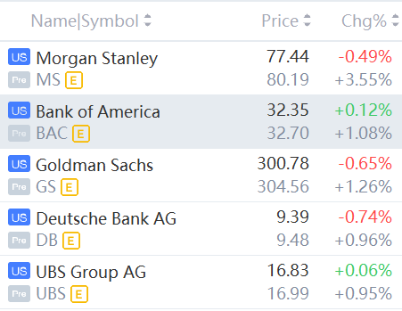 Bank Stocks Jumped Premarket, with Morgan Stanley Rising 3.5%.