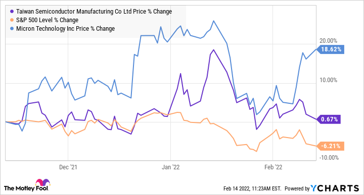 It's possible the current dip in stocks could turn into a more severe market correction, which could drag the best companies down with it. But the smart money seems to be positioning its chips behind TSMC and Micron, given the shares' relative performance to the broader market in recent months.