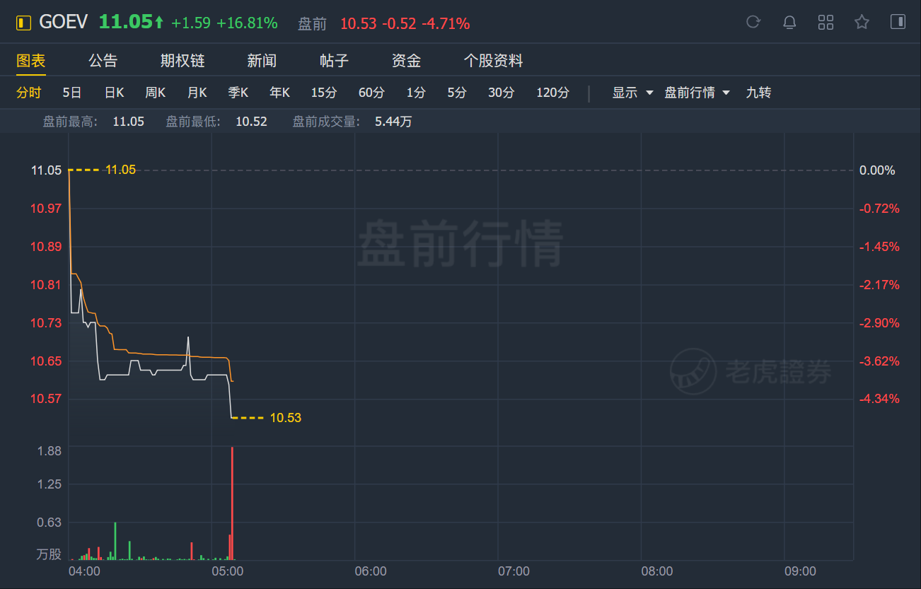 CANOO INC盘前跌4.71%,昨日收涨近17%,此前Reddit WSB论坛提及该股。