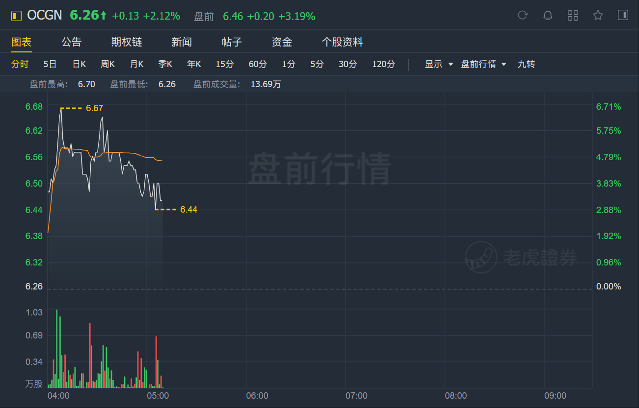 Ocugen盘前涨3.19%,公司就其在美国生产新冠疫苗COVAXIN建立生产伙伴关系。