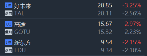 中概教育股盘前集体下挫,好未来、高途、新东方均跌超2%,教育部成立校外教育培训监管司,K12教育或迎来最强监管。此外,今日教育部发布校外培训风险提示:缴费套路多,勿上当。