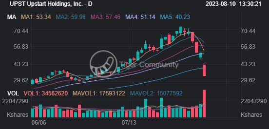 There are 412K Upstart option contracts traded on Wednesday, up 140% from the previous trading day. Put options account for 57% of overall option trades. Particularly high volume was seen for the $30 strike put option expiring August 11, with 11,503 contracts trading. UPST 20230811 30.0 PUT