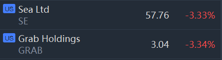 Sea and Grab stocks dropped more than 3% in morning trading.