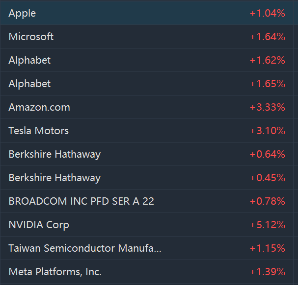 Megacap growth companies including Apple, Amazon, Microsoft, Meta Platforms and Tesla rose between 1% and 5% in morning trading.