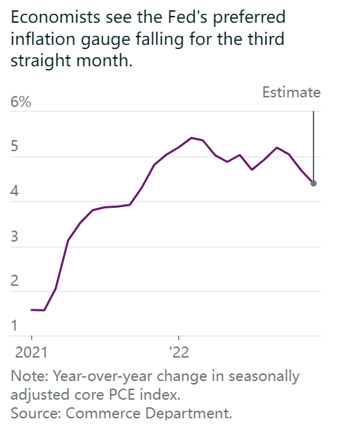 The Federal Reserve’s preferred measure of rising prices is set to show that inflation continues to trend downward, supporting the narrative that the central bank could soon ease up in its battle against elevated prices.