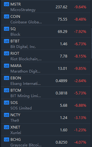 Crypto stocks slumped in morning trading with Marathon and MicroStrategy falling over 9%.