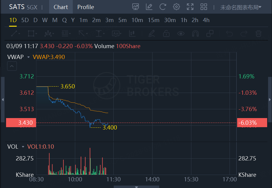 SATS tumbles 6.03% at 11:17 am, Mar 9th.