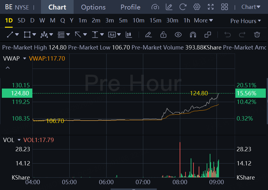 Shares of Bloom Energy soared over 15% in premarket trading.