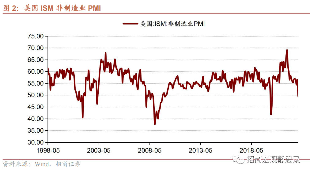 但中期来看,企业成本骤降、ISM非制造业PMI跌破荣枯线,美国经济的周期性衰退正在逼近。尽管我们在22年12月28日报告《美国经济的韧性及对中国放开后的启示》中指出,过去两年在劳动力短缺背景下,疫前低教育背景、缺乏工作经验的中低收入群体在疫后更容易获得高薪职位进而增强了就业、消费与经济数据的韧性。但这并不妨碍美国经济即将迎来一次周期性衰退。我们用融资成本、原材料成本与人力成本等权重拟合了美国企业综合平均成本指数,70年代以来该指标有8次自高位快速回落,8个顶点分别出现在1974Q4、1981Q2、1990Q4、2001Q3、2008Q3、2011Q3以及2022Q2。此前,美国企业综合平均成本指数见顶快速回落后只有2011Q3后美国未现经济负增长,其余6次美国经济均现负增长。这反映了总需求放缓才是加息打压通胀的终点。2022Q2该指标见顶后2022Q3-Q4快速回落,预示了美国总需求开始放缓。此外,90年代末以来美国ISM非制造业PMI仅在经济衰退阶段才会跌破荣枯线,12月该指标仅为49.6,亦预示了美国经济的衰退风险。