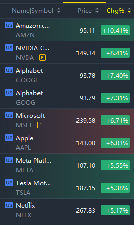 Mega-cap stocks led U.S. stock indexes going up higher in morning trading; Amazon.com gained over 10% and Alphabet gained over 7%.