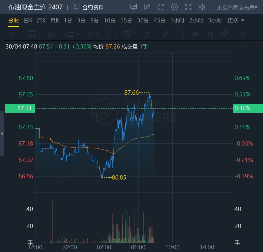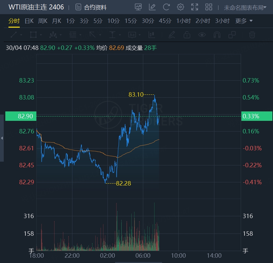 原油期货震荡走高,截止发稿,WTI原油涨0.33%,报82.9美元/桶;布伦特原油涨0.36%,报87.51美元/桶。