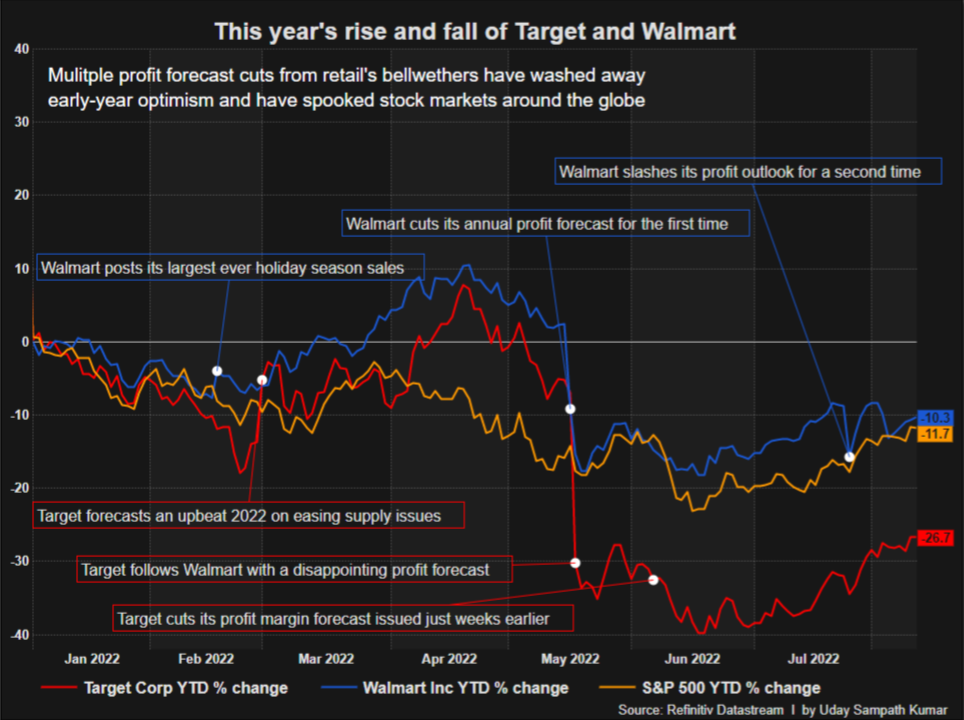 "The low-end customer has not been doing well and that hurts Walmart more. Target will not get affected so much as it caters to a middle-to-higher end customer," said Dave Harden, chief investment officer at Summit Global Investments