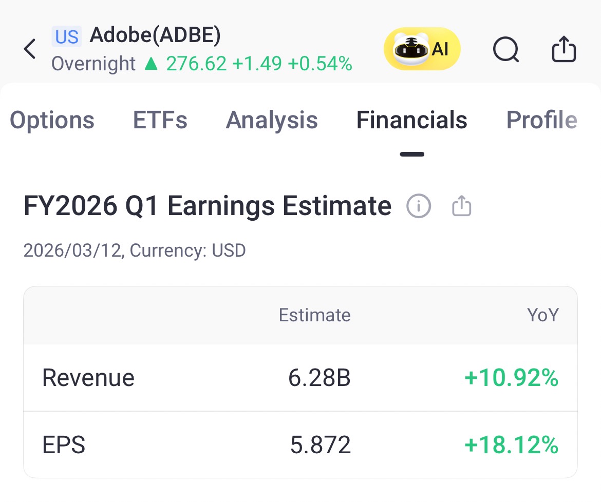 Adobe Inc. is scheduled to report its latest quarterly results after the market close on March 12. Consensus estimates call for revenue of about $6.28 billion for the quarter, up 10.92% year-on-year, and earnings per share (EPS) of roughly $5.87, representing 18.12% growth from a year earlier.
