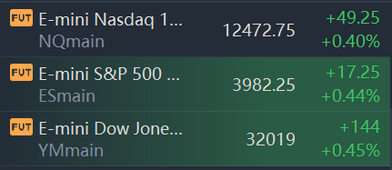 At 8:08 a.m. ET, Dow e-minis were up 144 points, or 0.45%, S&P 500 e-minis were down 17.25 points, or 0.44%, and Nasdaq 100 e-minis were up 49.25 points, or 0.40%.