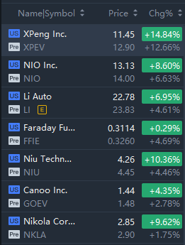 EV stocks kept frenzy in premarket trading; XPeng Inc. soared over 12% and NIO Inc. gained over 6%.