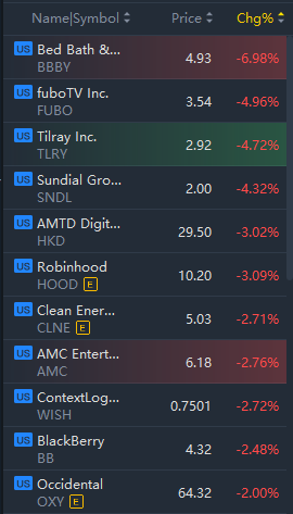 Meme stocks slipped in morning trading, with Bed Bath & Beyond slumping over 6% and fuboTV Inc. slumping over 4%,