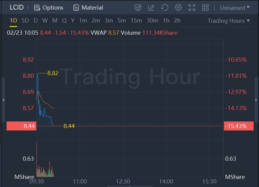Lucid Group Inc. late Wednesday reported a narrower quarterly loss but sales came in below Wall Street's expectations and its order book shrunk, sending the stock about 15% lower in morning trading Thursday.